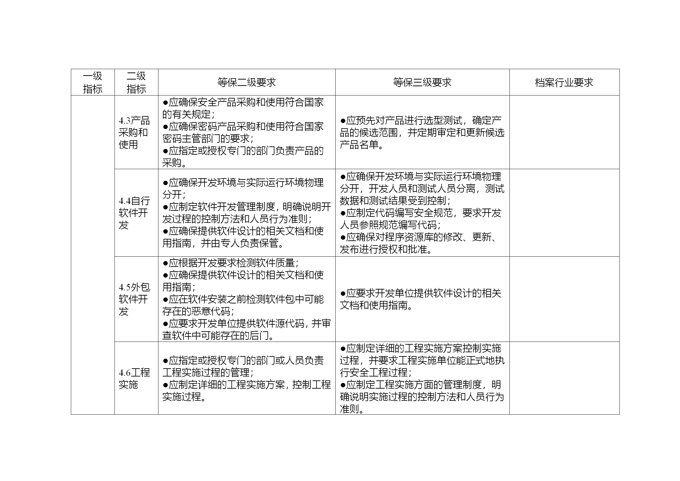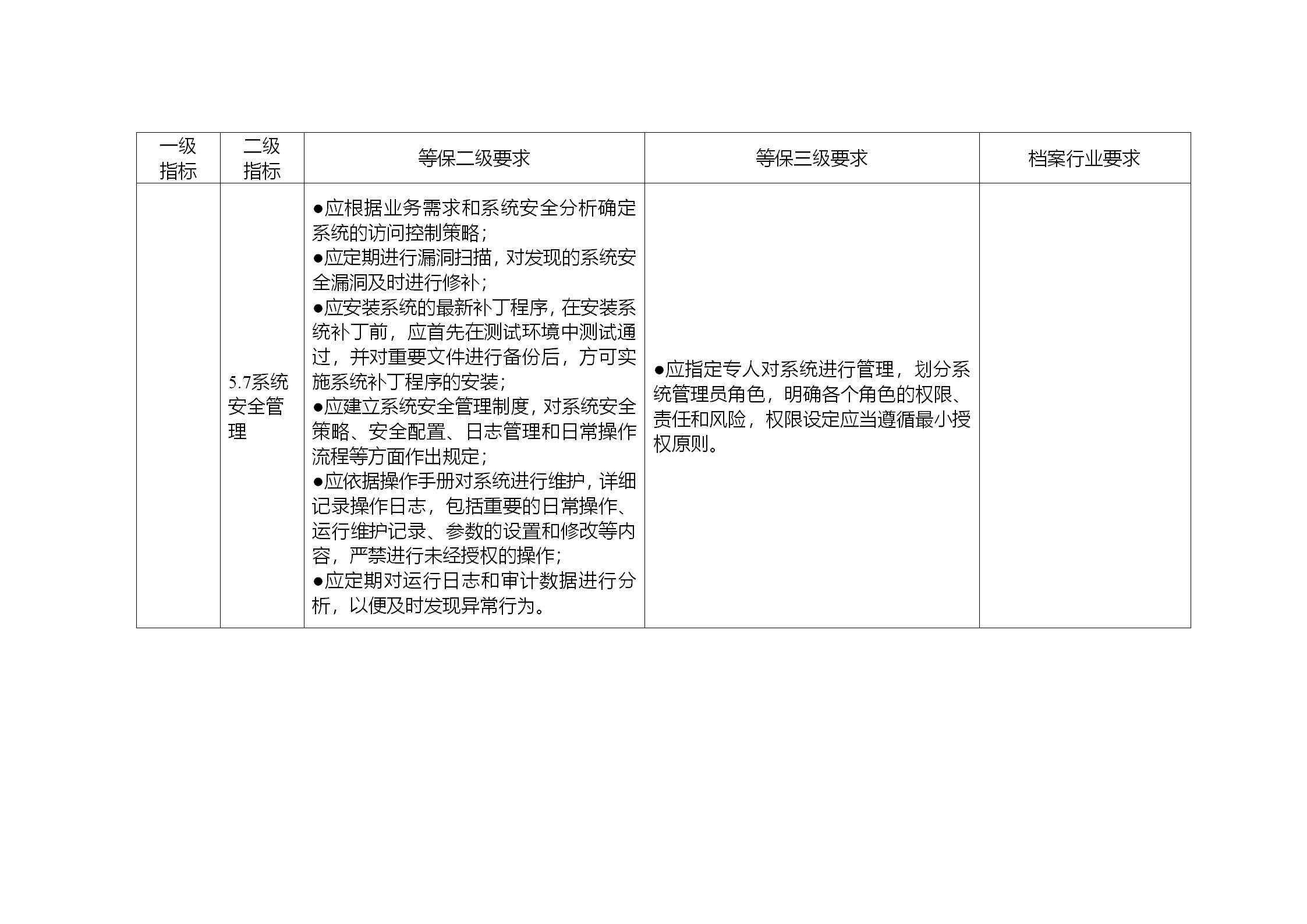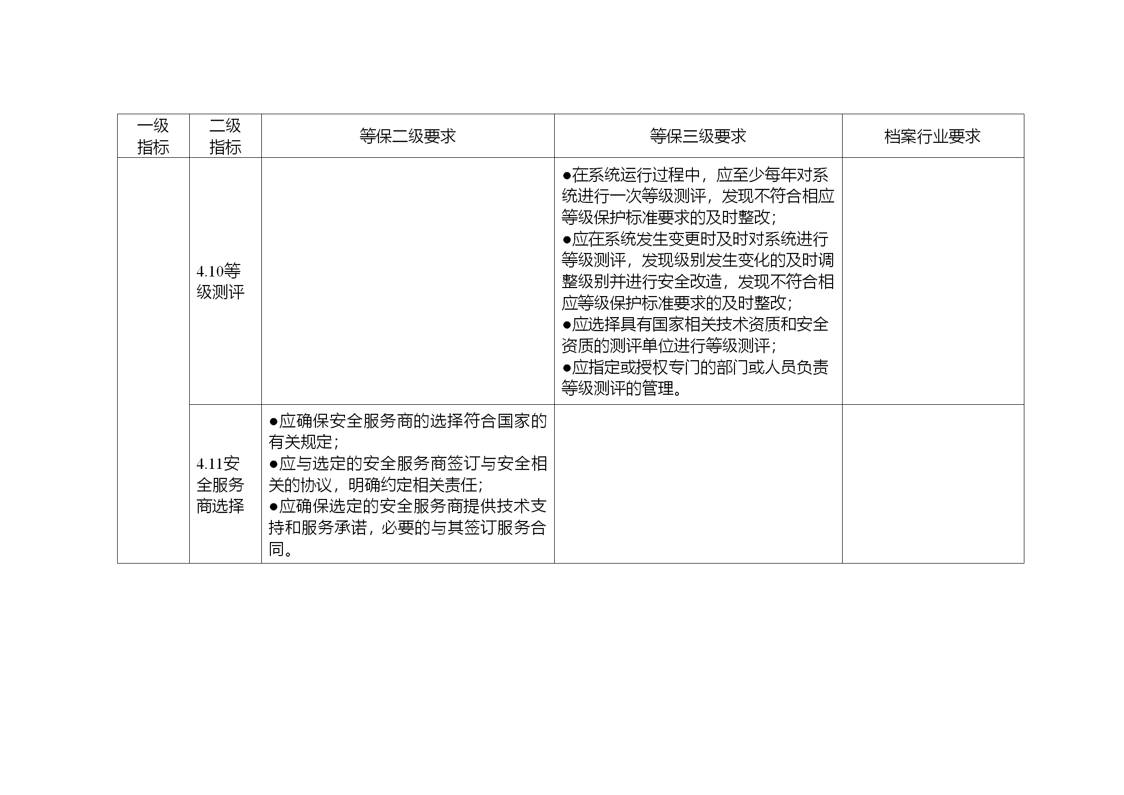 3.安全保护水平与等保二级保护水平相同的系统,除满足“等保二级要求”中的具体要求之外,还需同时满足“档案行业要求”。安全保护水平与等保三级保护水平相同的系统,除满足“等保三级要求”的具体要求之外,还需同时满足“等保二级要求”,和“档案行业要求”。