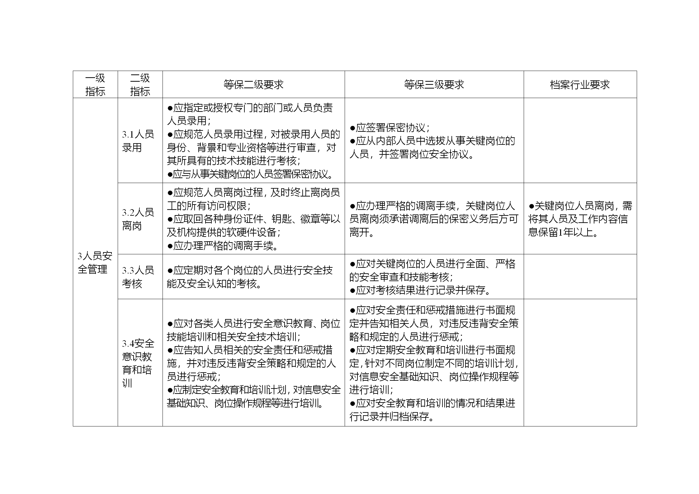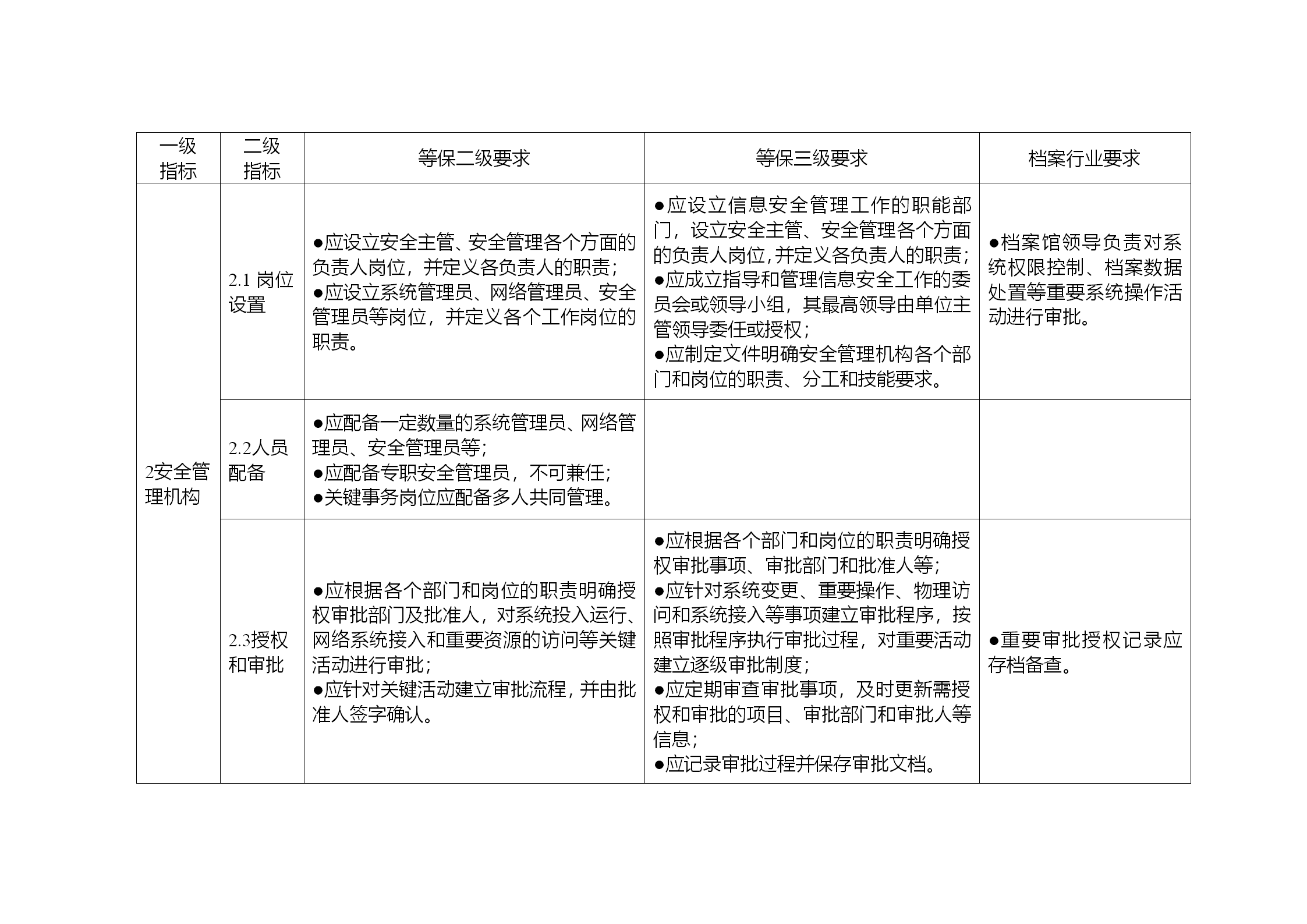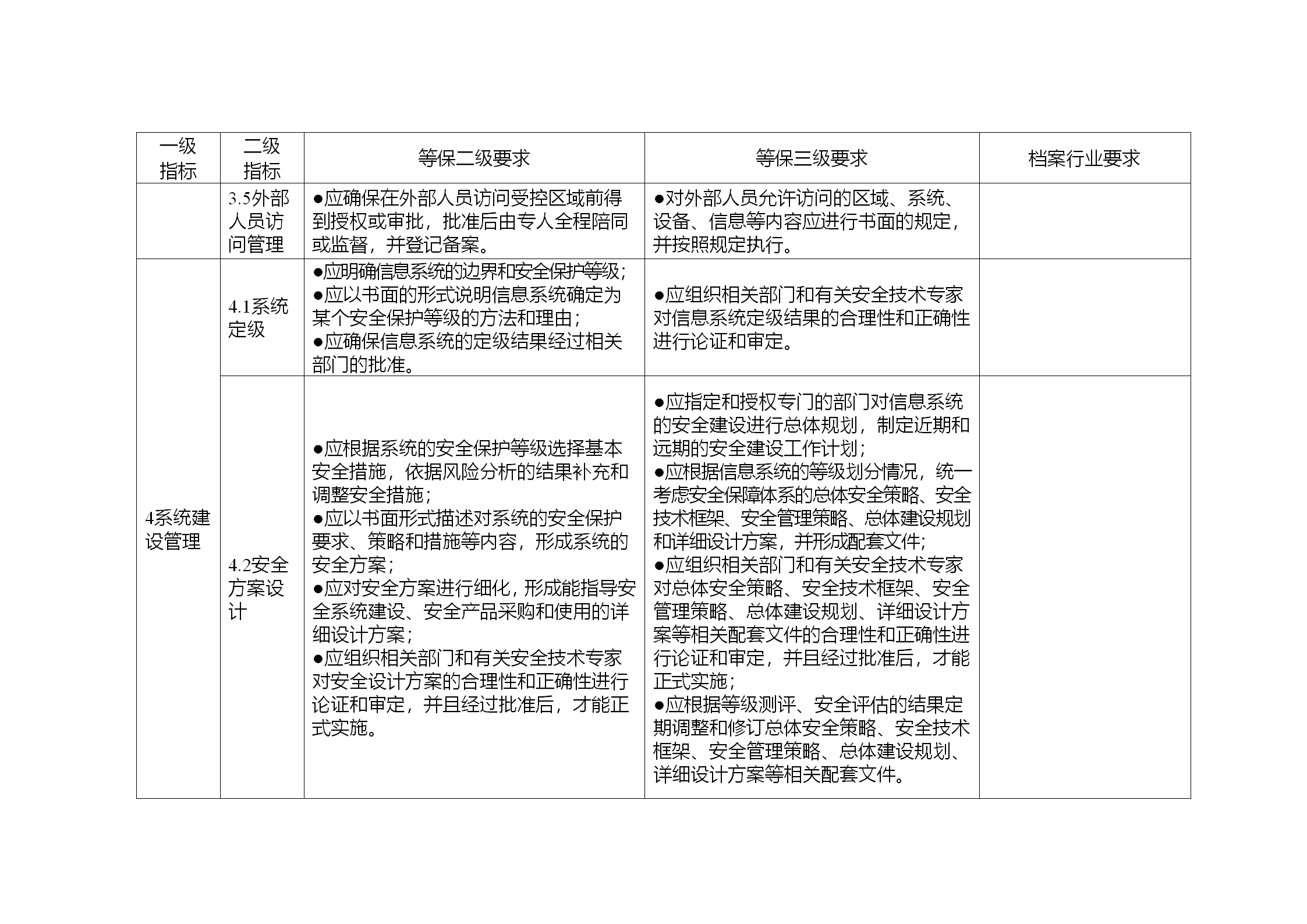 2.《基本要求》中的“等保二级要求”“等保三级要求”中的有关规定均来源于《信息安全技术 信息系统安全等级保护基本要求》(GB/T 22239-2008)中的规定,“档案行业要求”中的有关规定是根据档案信息系统的特点作出的补充规定。